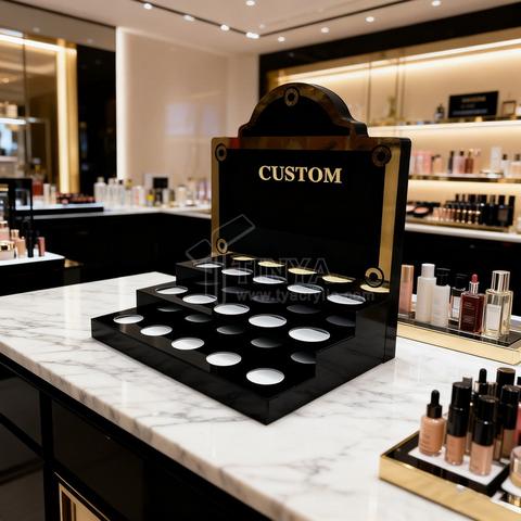 Custom Acrylic Perfume Display Countertop Luxury Foundation Display Skincare Display Makeup Cosmetic Stand